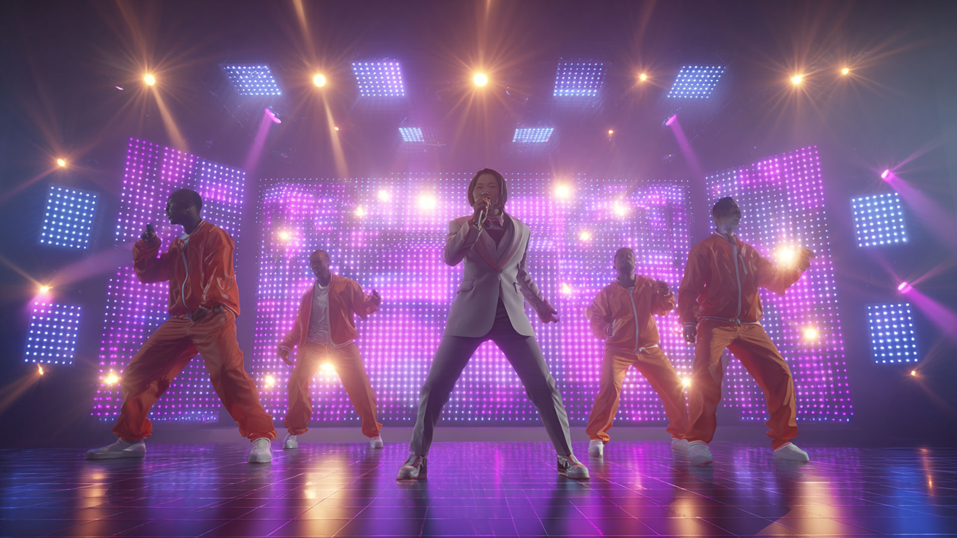 LED walls. Concert lighting. Pro dancers. Custom visuals. Your execs perform like Vegas headliners.